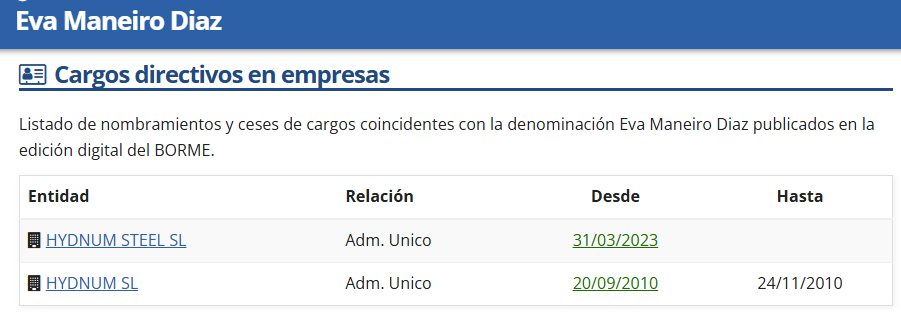 LE QUITAN EL MARIA Y YA SALE EN OTRAS EMPRESAS EVA MANEIRO DIAZ