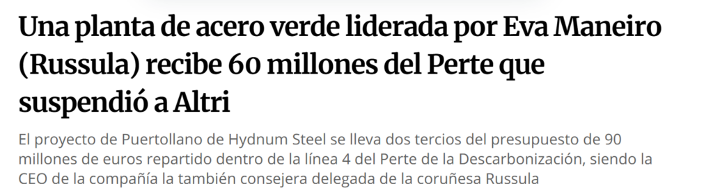 MINISTERIO DE INDUSTRIA Y TURISMO DIRECCIÓN GENERAL DE ESTRATEGIA INDUSTRIAL Y DE LA PEQUEÑA Y MEDIANA EMPRESA 779286 Convocatoria de las ayudas para el desarrollo de instalaciones manufactureras altamente eficientes y descarbonizadas como parte del PERTE de Descarbonización Industrial en el marco del Plan de Recuperación, Transformación y Resiliencia. https://boe.es/diario_boe/txt.php?id=BOE-A-2024-16383 SB134982529 11/08/2025 B19454990 HYDNUM PUERTOLLANO, S.L. 30.000.000,00 € SUBVENCIÓN y ENTREGA DINERARIA SIN CONTRAPRESTACIÓN