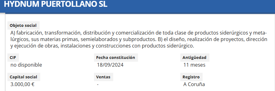 A UNA EMPRESA CON 11 MESES DE ANTIGUEDAD DE A CORUÑA