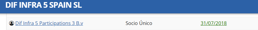 Dif Infra 5 Participations 3 B.v Socio Único 31/07/2018