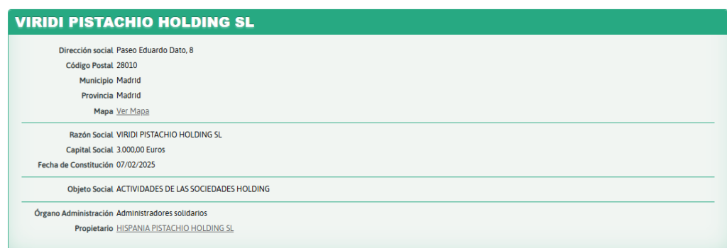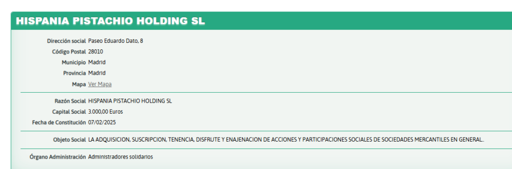 NUESTROS EUROS, 646.140,06 € A UNA EMPRERSA CONSTITUIDA HACE CINCO MESES. PISTACHOS ?